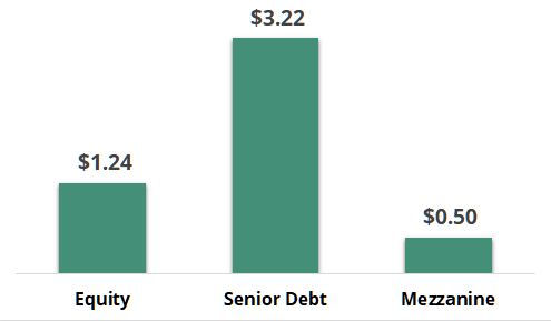 Total development capital of approximately $4.95 billion is expected to be deployed across four phases in alignment with construction progress and leasing milestones. Phase 1, representing roughly 20% of total project cost (~$1.0 billion), will be funded through a higher proportion of equity (30–40%) complemented by a construction loan, reflecting the risk/reward profile of the initial development and utility interconnection stage. Phase 2, accounting for approximately 25% of total capital (~$1.2 billion), will be financed through a combination of senior project debt and partial reinvestment of Phase 1 equity returns, benefiting from improved credit strength following initial tenant commitments.